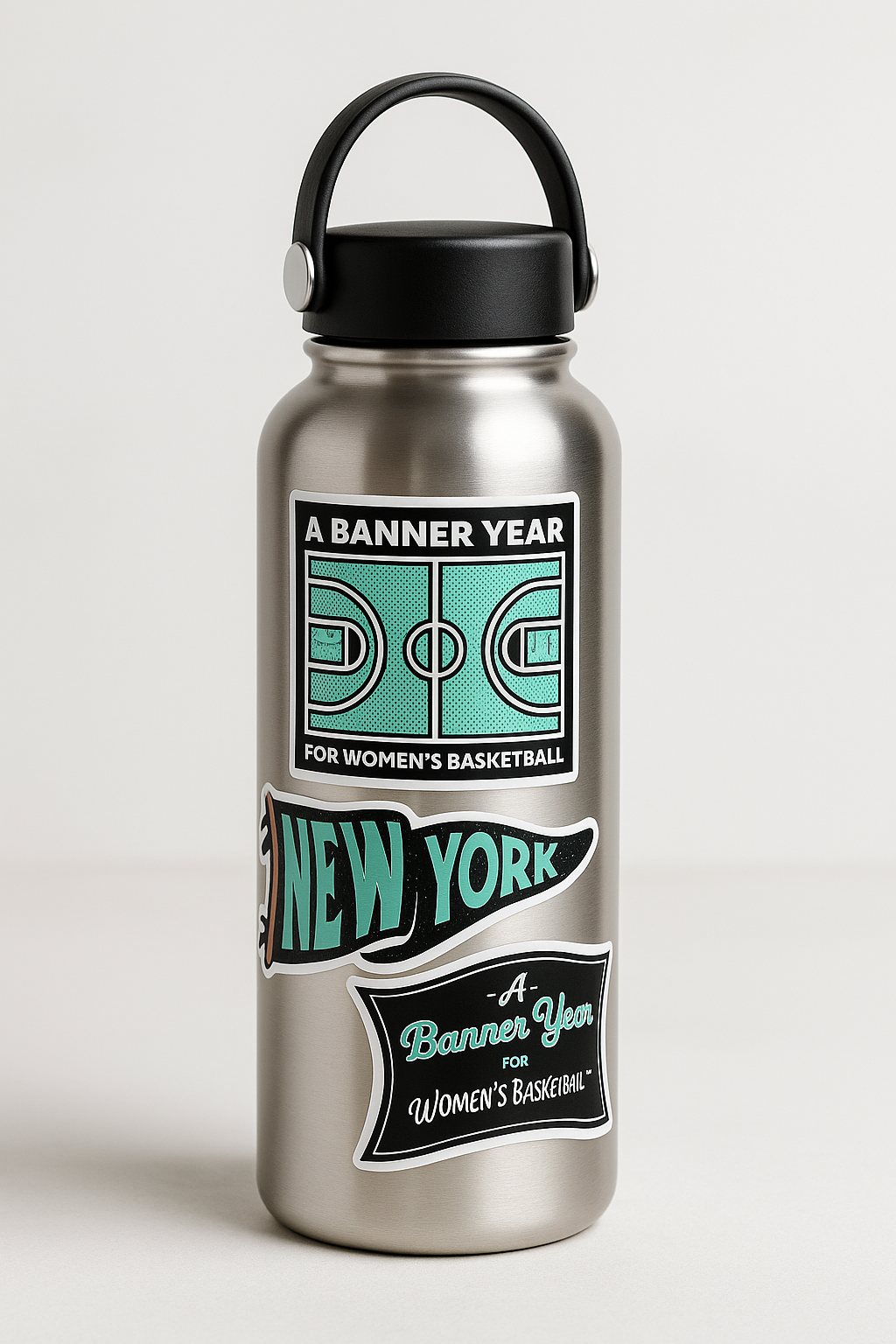 Show your Booster Club pride everywhere you go. This exclusive sticker pack features premium vinyl decals inspired by Banner Year’s fan-first mission and women’s basketball culture. Perfect for laptops, water bottles, game-day signs, and more.